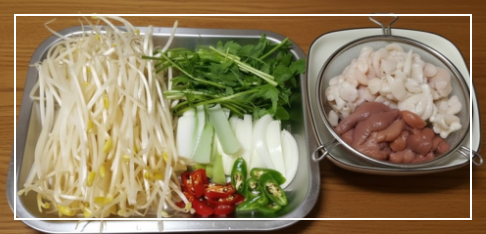 - 찜용 콩나물: 1봉지 (약 300g, 대가리와 꼬리를 떼면 훨씬 깔끔합니다)