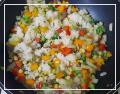 고기와 야채가 익으면 찬밥 2공기를 넣습니다.