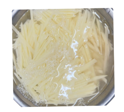 - 채 썬 감자는 넉넉한 물에 바로 담가주세요. (갈변 방지)