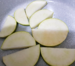 - 무는 큼직하게 썰어 냄비 바닥에 깐다.