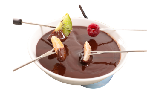 - 찍어 먹을 재료(디핑): 딸기, 바나나, 청포도, 파인애플 등 과일, 마시멜로, 비스킷, 프레첼, 각종 빵