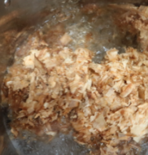- 불을 끄고, 가쓰오부시 한 줌을 넣습니다.