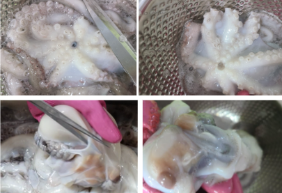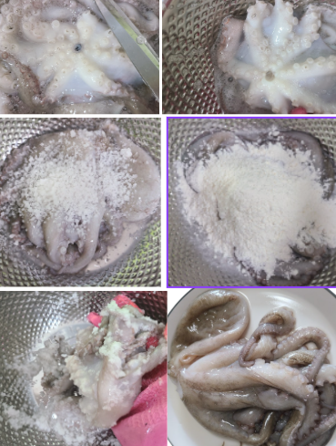 - ✅ 문어/낙지 손질: 머리 내장을 제거하고, 밀가루와 굵은소금으로 바락바락 문질러 빨판의 뻘을 제거한 뒤 헹굽니다.