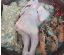 가장 중요한 것은 닭의 기름기와 해산물의 이물질 제거입니다.
