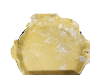 • 4. 성형하기: 휴지가 끝난 반죽을 덧밀가루를 뿌린 작업대 위에서 0.3cm 두께로 얇게 밀어, 파이 틀(지름 23cm)에 맞게 깔아줍니다. 포크로 바닥에 구멍을 숭숭 뚫어주세요.