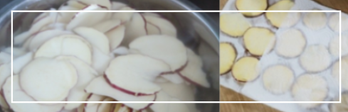 - Tip: 물기가 남아있으면 기름에 넣었을 때 폭발하듯 튀고, 칩이 눅눅해집니다.