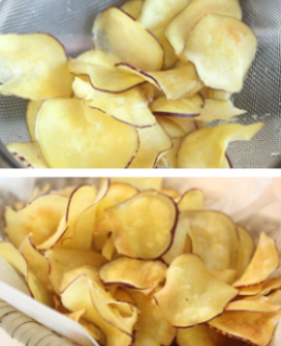 에어프라이어도 좋지만 기름에 직접 튀겨낸 고구마 칩의 맛은 차원이 다르죠.