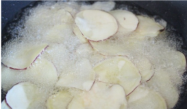 - Tip: 물기가 남아있으면 기름에 넣었을 때 폭발하듯 튀고, 칩이 눅눅해집니다.