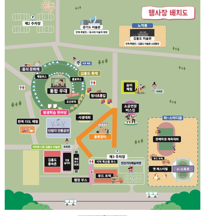 (특징: '고잔역'과 가깝고, '김홍도 축제', '락 페스타' 메인 무대를 즐기기에 최적입니다. 주차 공간이 가장 넉넉합니다.)